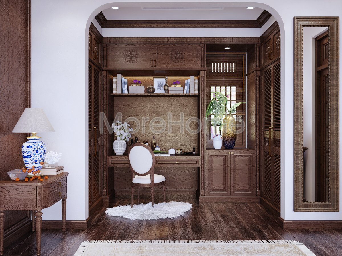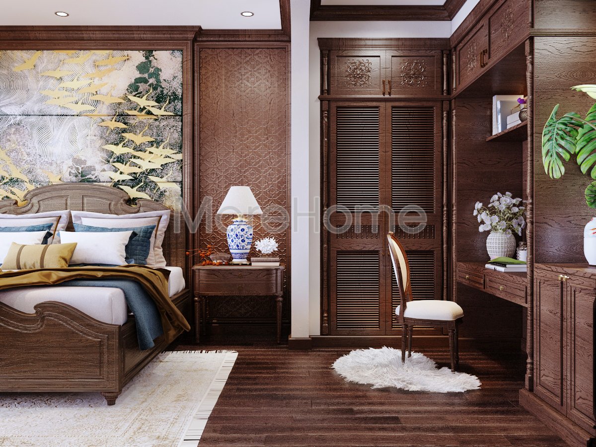 Tủ áo gỗ óc chó chung cư Sunrise tân cổ điển