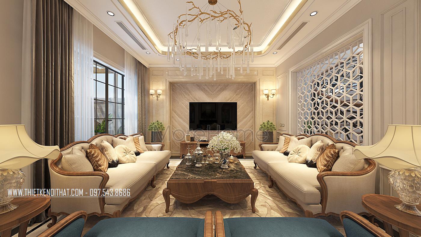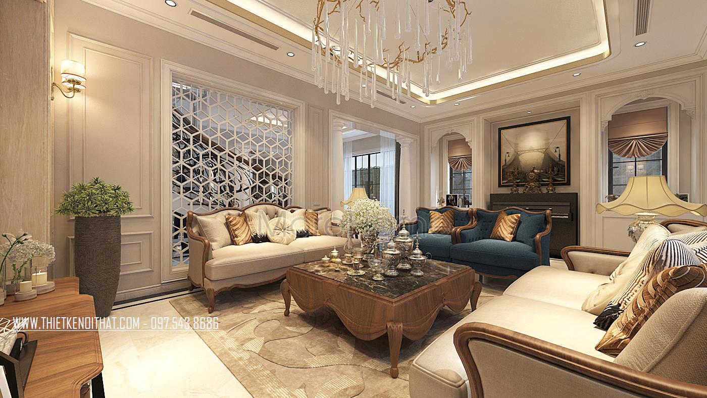 Bộ sofa gỗ óc chó cao cấp tại biệt thự Vinhomes Riverside