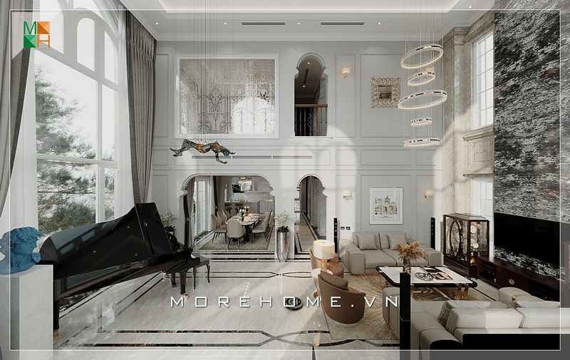 Thiết kế nội thất tân cổ điển cùng cách trang trí phá cách từ tường, trần, sàn đã tạo nên vẻ đẹp sang trọng, đẳng cấp cho không gian biệt thự, nhà phố.