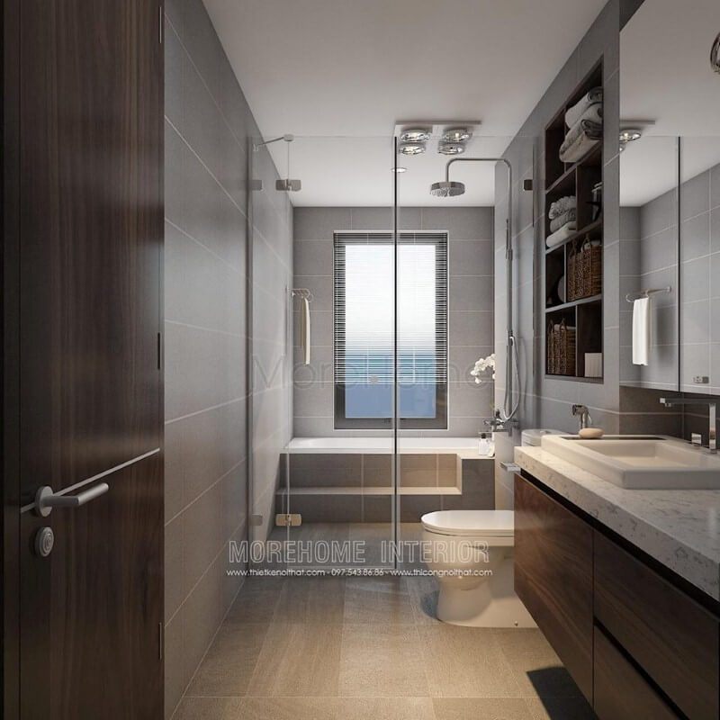 Bố trí nội thất phòng tắm cao cấp có bồn đẹp, sang trọng.