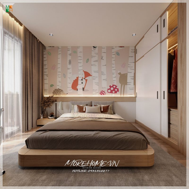 Không gian phòng ngủ trở nên trẻ trung sinh động hơn với mẫu giấy dán tường động vật đáng yêu